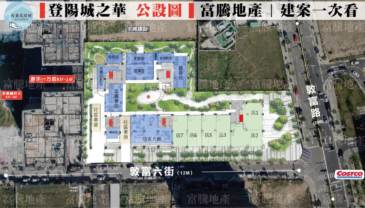 登陽城之華是登陽建設在機捷特區推的第四個建案,主打基地好市多第一排,約1分鐘到達捷運總站、好市多、公園,基地腹地大,公設規劃完整,一樓挑高8米8非常氣派,車道單進5米8單出5米25,機車道獨立且有分流進出設計,車位也非常貼心有規劃到充電車位。此案在規劃與設計非常的用心。