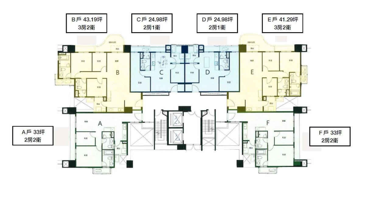 房型及坪數規劃:3房(37~46坪)